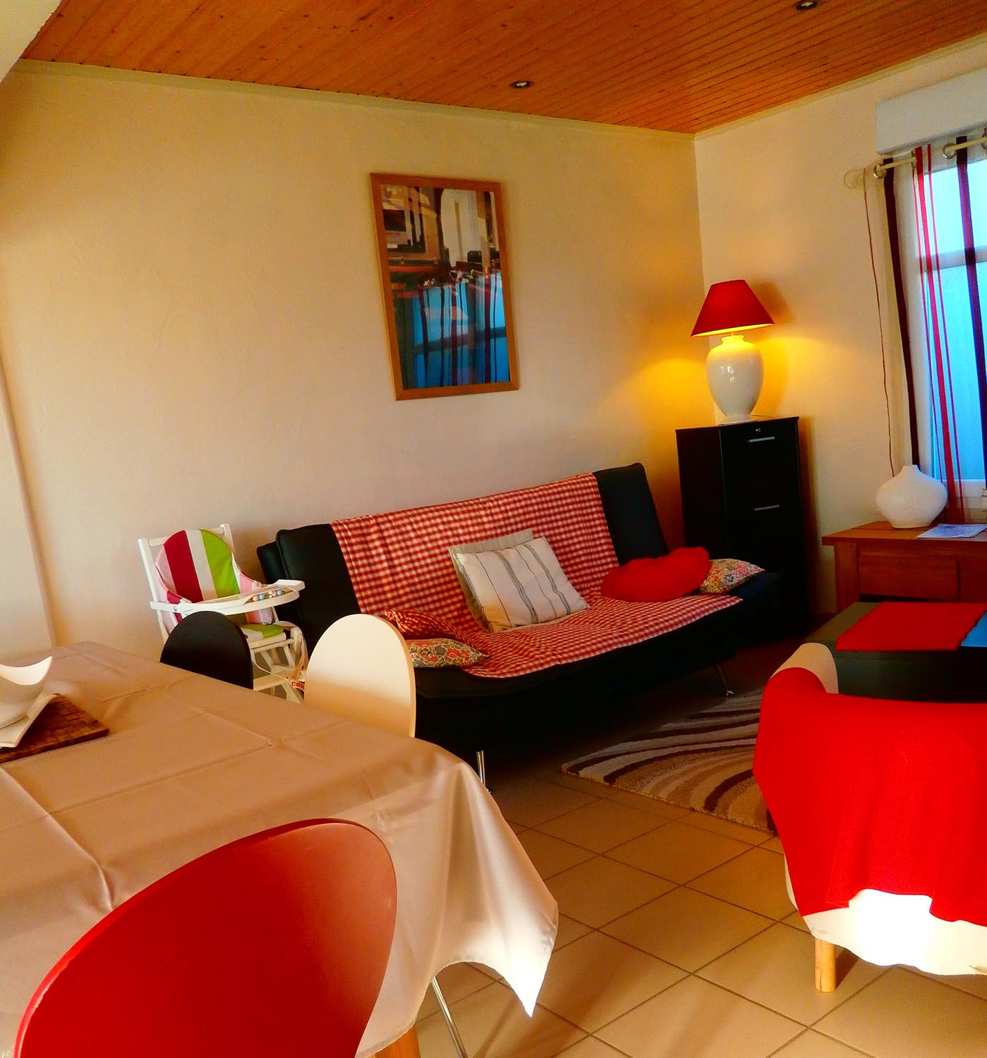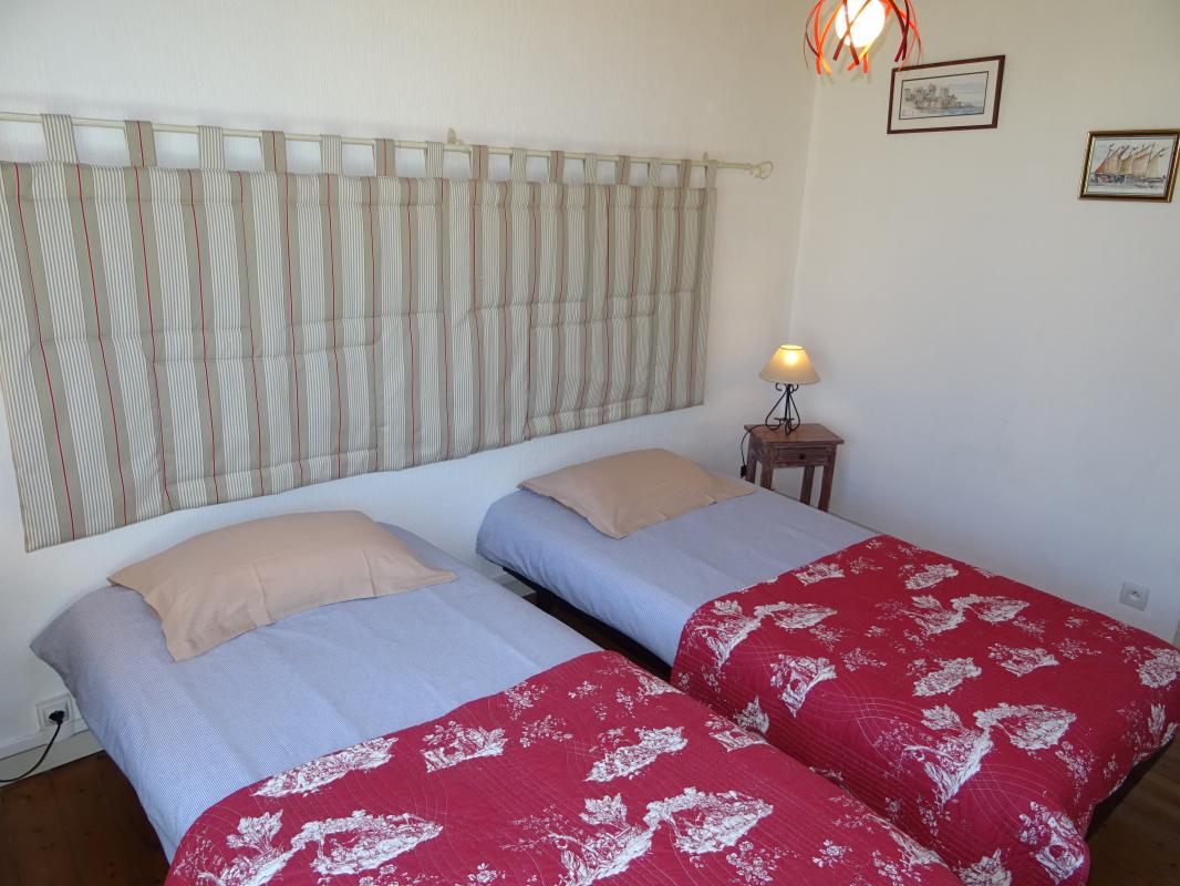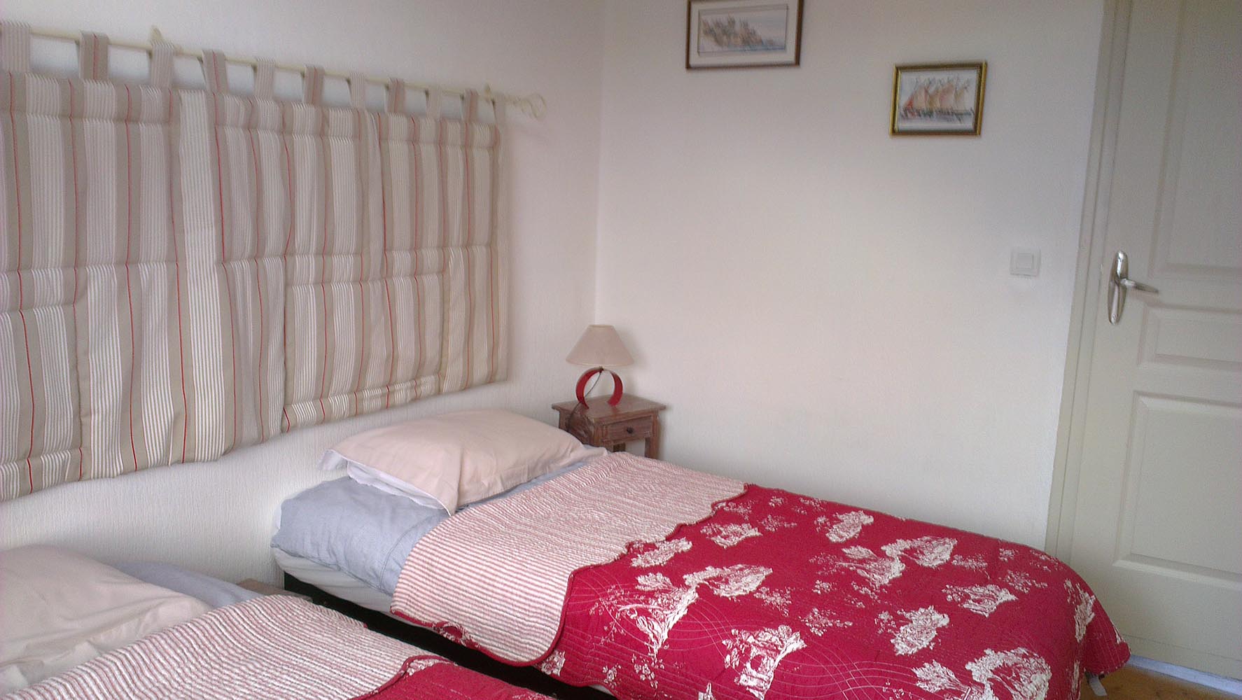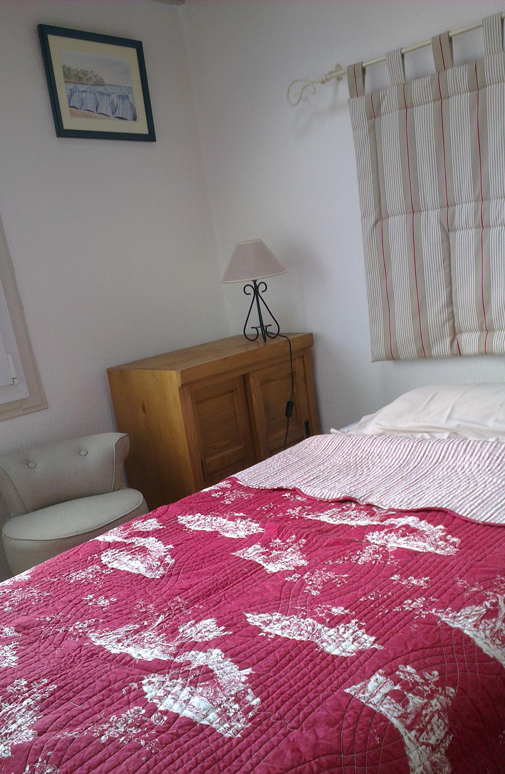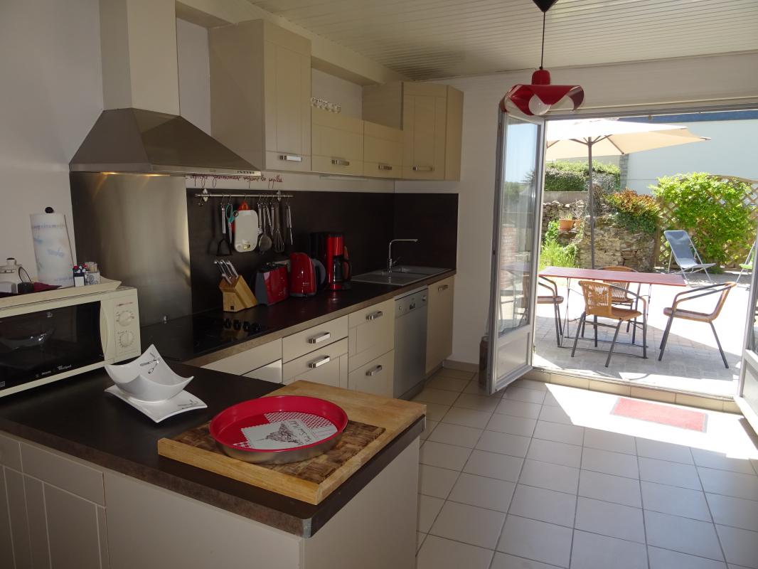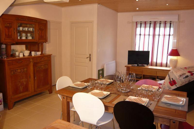 Au RDC : style contemporain : salle de séjour, salon, cuisine intégrée, salle d’eau, wc séparés. A l’étage : 1 ch (l lit 2 pl), 1 ch (2 lits l pl), 1 ch (1 lit gigogne pouvant se transformer en lit 2 places), salle de bain avec WC. Chauffage électrique. Lits faits à l’arrivée gratuits. Cour mitoyenne, terrasse privative, barbecue. Parking 1 place.