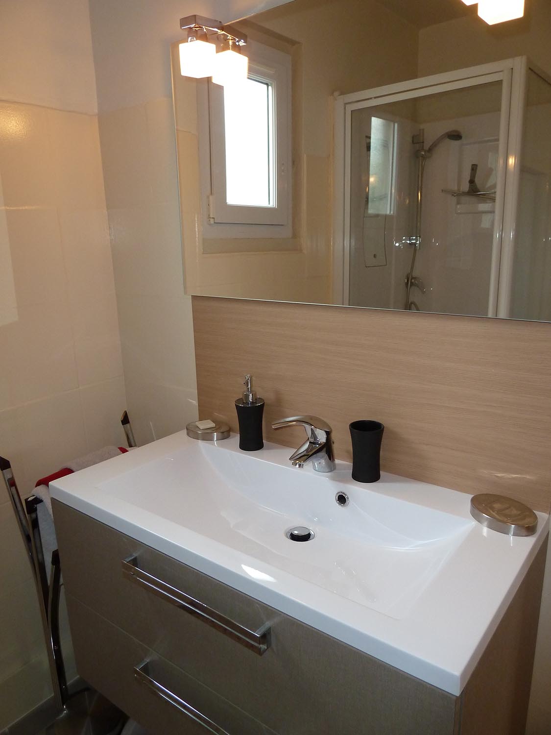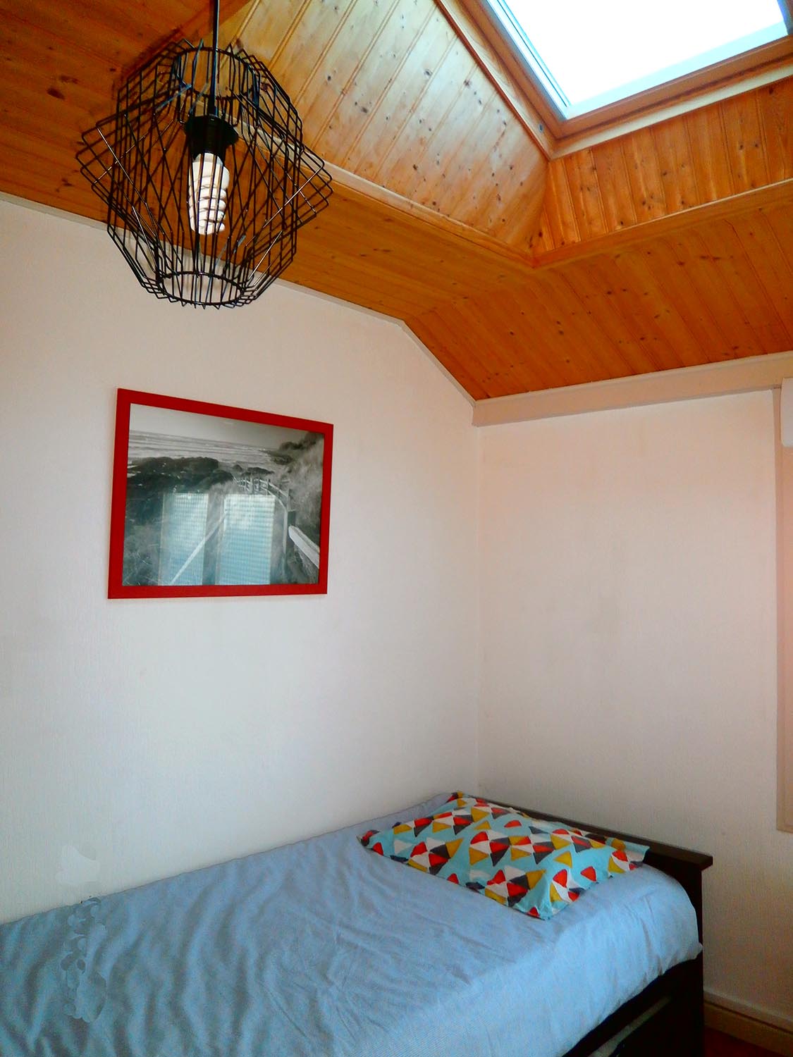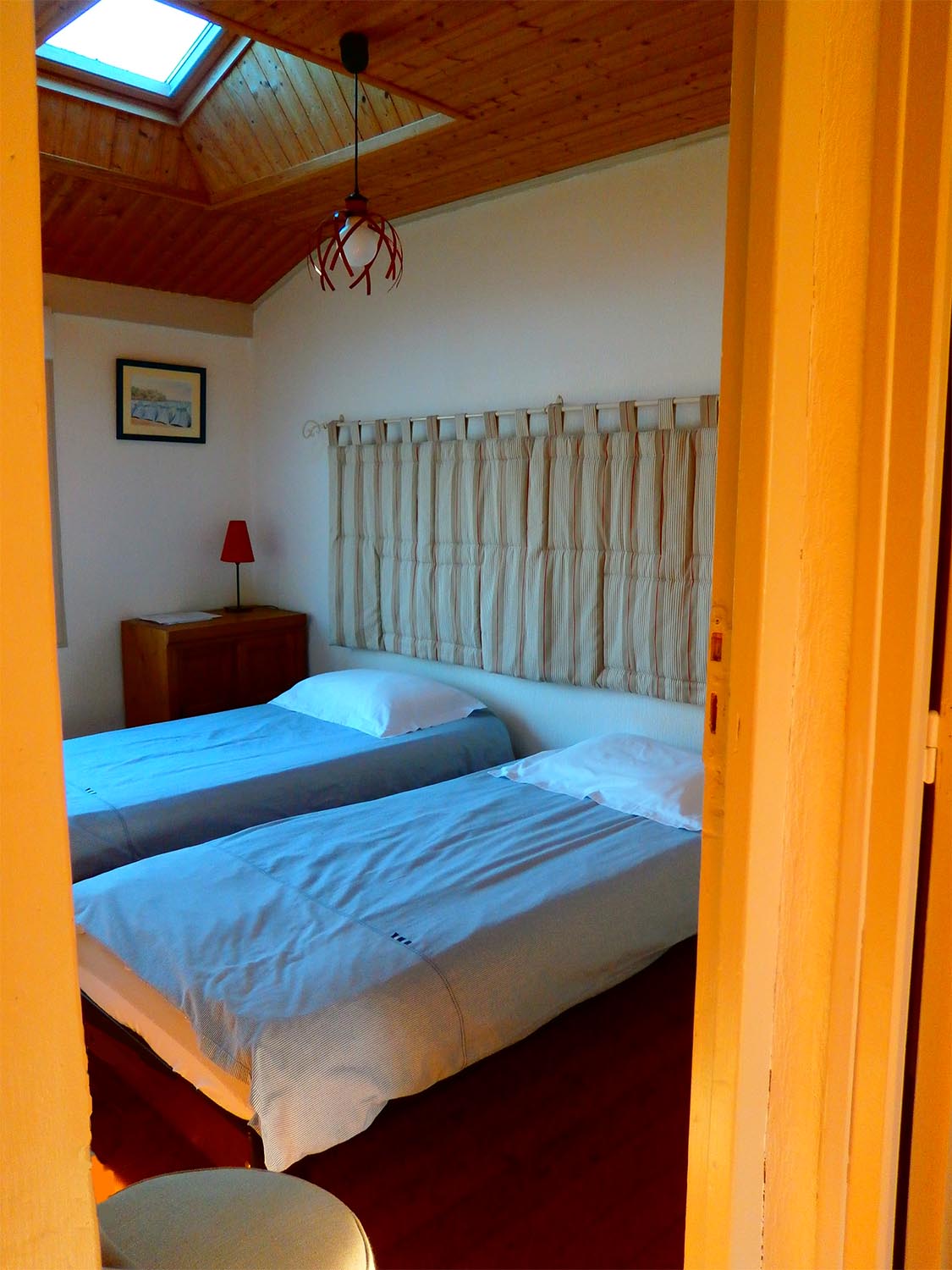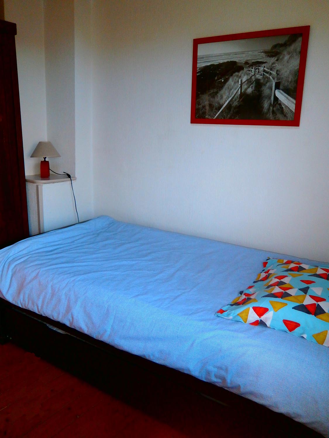 Au RDC : style contemporain : salle de séjour, salon, cuisine intégrée, salle d’eau, wc séparés. A l’étage : 1 ch (l lit 2 pl), 1 ch (2 lits l pl), 1 ch (1 lit gigogne pouvant se transformer en lit 2 places), salle de bain avec WC. Chauffage électrique. Lits faits à l’arrivée gratuits. Cour mitoyenne, terrasse privative, barbecue. Parking 1 place.